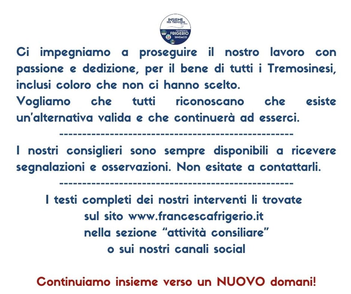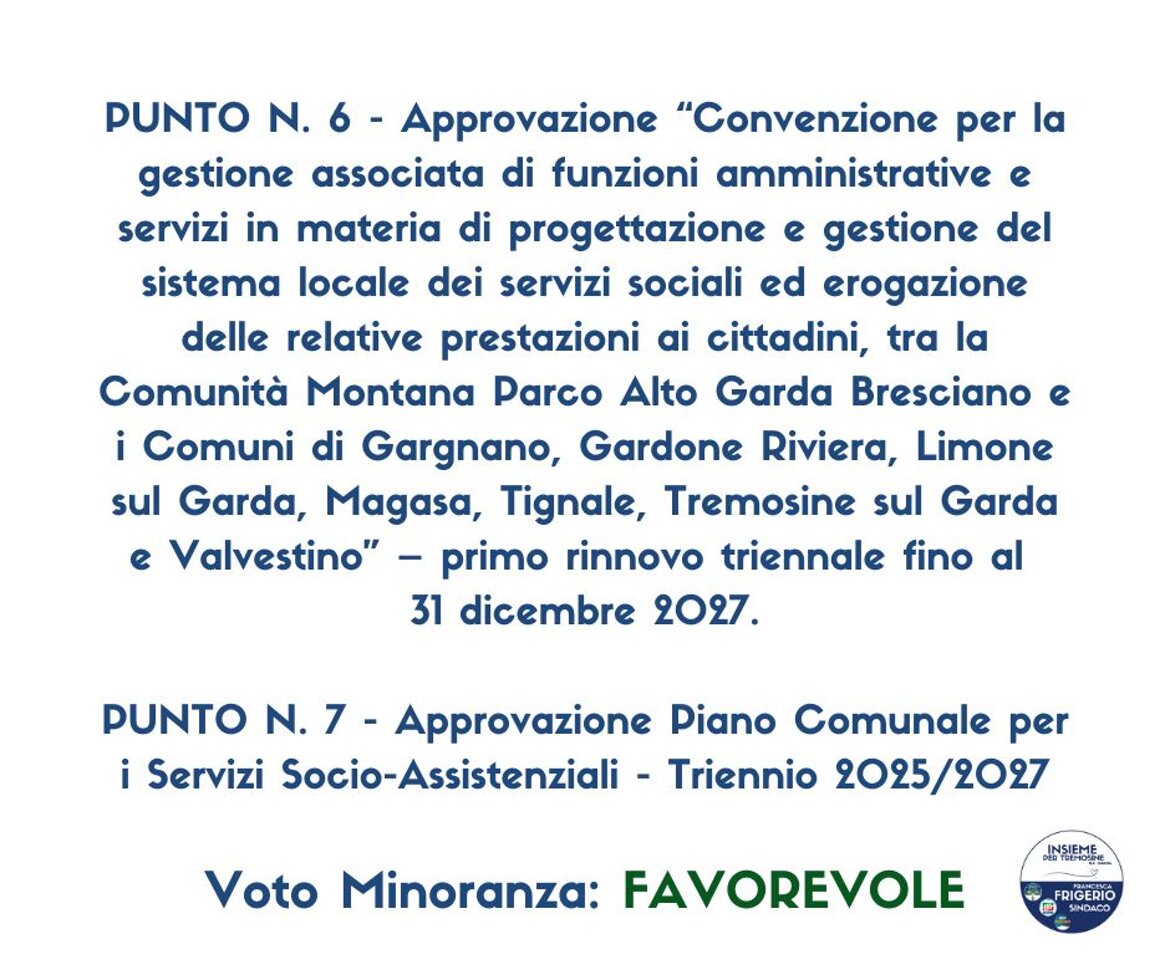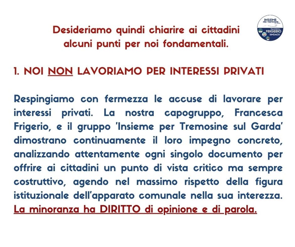 Tutti i dati personali eventualmente presenti sono stati anonimizzati nel rispetto del Regolamento (UE) 2016/679 (GDPR) e della normativa nazionale sulla privacy. I contenuti pubblicati si riferiscono esclusivamente all’attività istituzionale del gruppo consiliare di minoranza “Insieme per Tremosine sul Garda”
