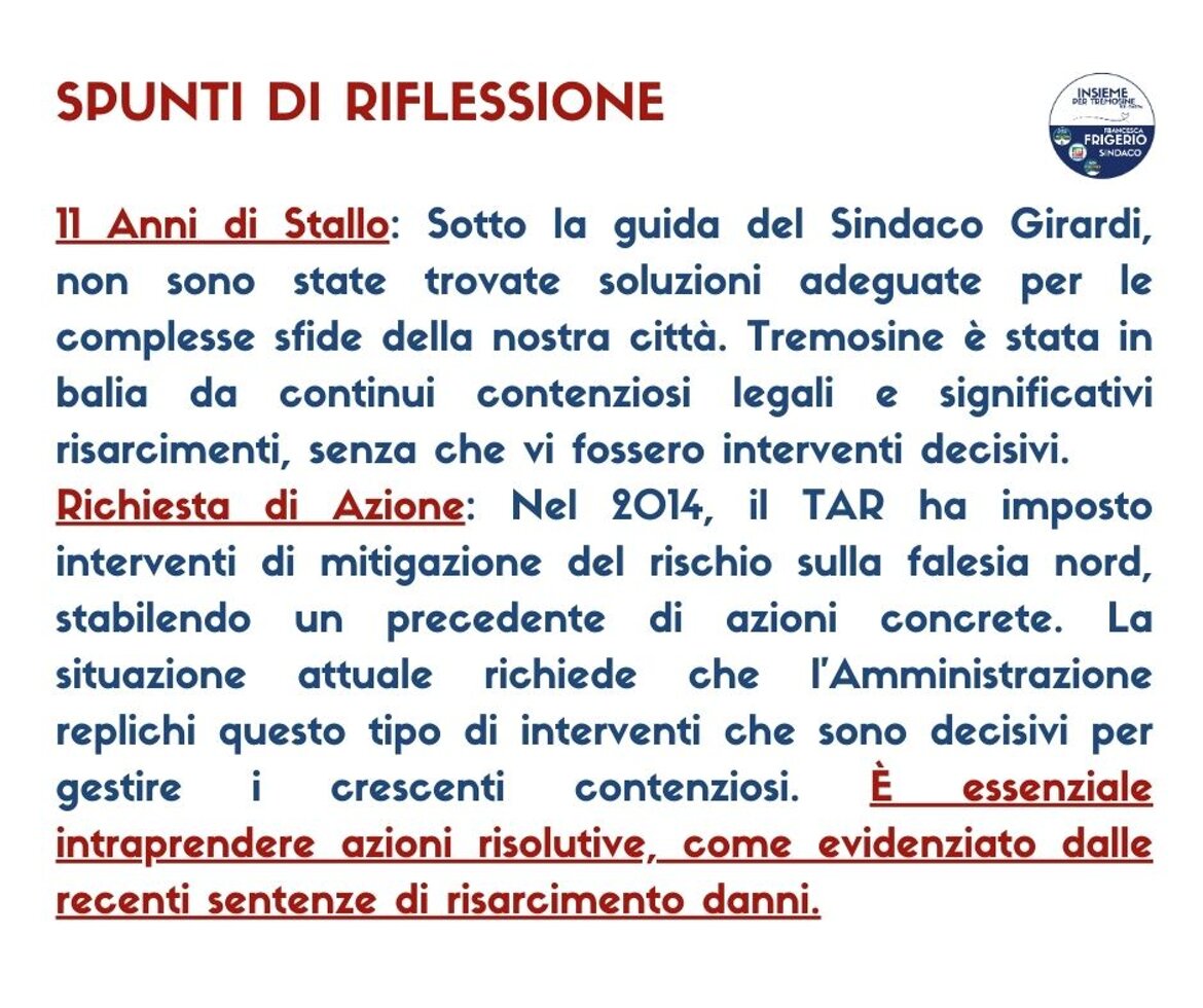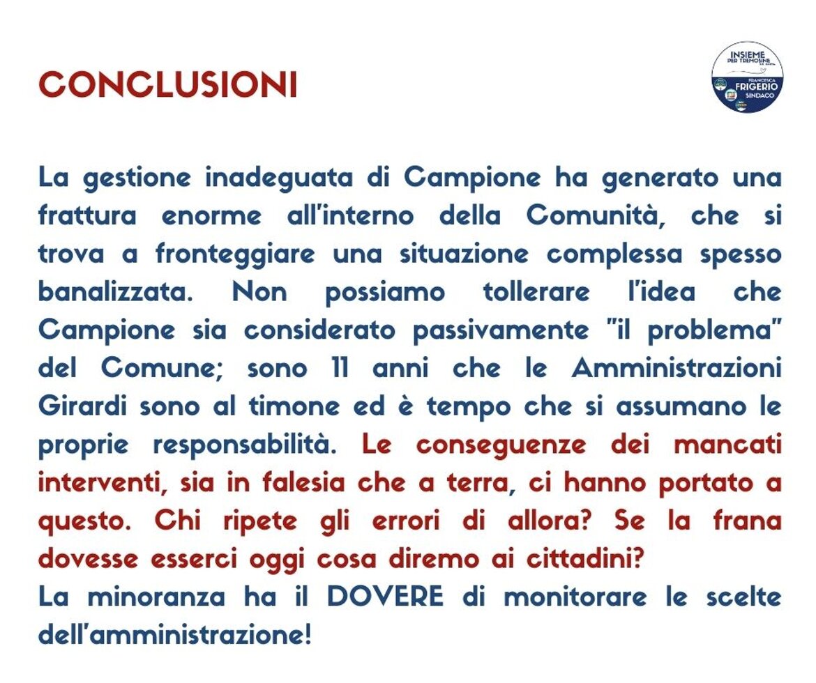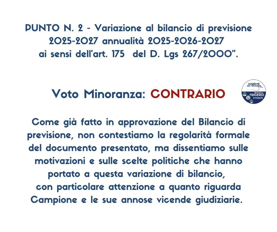 Tutti i dati personali eventualmente presenti sono stati anonimizzati nel rispetto del Regolamento (UE) 2016/679 (GDPR) e della normativa nazionale sulla privacy. I contenuti pubblicati si riferiscono esclusivamente all’attività istituzionale del gruppo consiliare di minoranza “Insieme per Tremosine sul Garda”